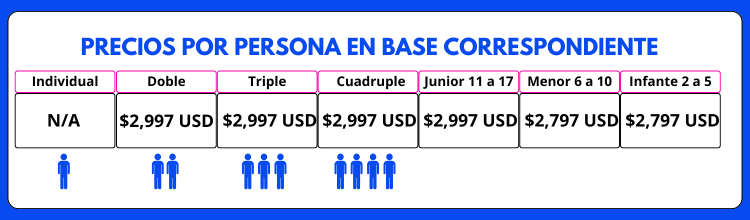 Reserva desde hoy con solo $200 USD por persona y págalo poco a poco en cómodos pagos semanales o quincenales.